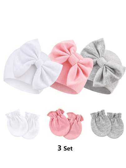 3 套新生儿双层帽子和防刮手套套装,透气柔软 - 彩色 - 查看 1