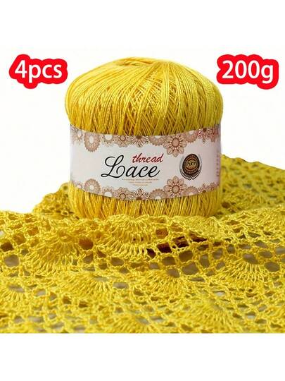 4 团 8 号珍珠蕾丝线,共 200 克,手工 DIY 针织/钩针材料,适用于轻质披肩、夏季镂空毛衣、围巾、帽子 - 彩色 - 查看 1