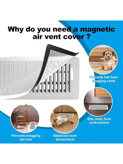 4 件装磁性 10/12 英寸地板通风口网罩 耐用通风口屏幕 挡风玻璃 适用于墙壁、天花板、地板,捕捉碎屑头发灰尘玩具 易于安装 家庭厨房房间装饰工具配件 白色 - 彩色 - 查看 2