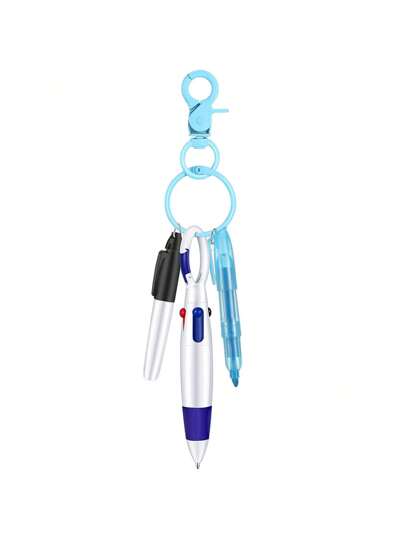 4 支装护士笔套装,包括尖头荧光笔、永久性记号笔、伸缩圆珠笔和护理钥匙扣夹(蓝色) - 藍色 - 查看 4