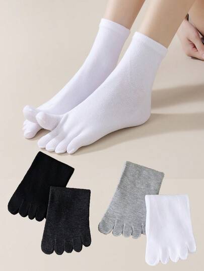 4 双女式纯色分趾中筒袜,适合日常、运动、休闲穿着,四季皆宜 - 彩色 - 查看 1