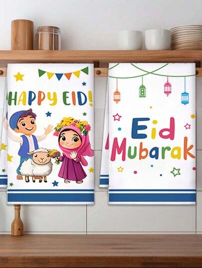 40*60厘米卡通毛巾套装,开斋节快乐主题手巾,开斋节装饰毛巾2件套,彩色灯笼派对风格
