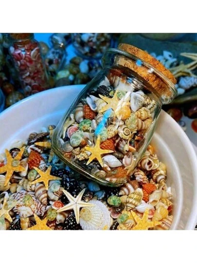 400 件天然贝壳和海螺系列,6 种超小贝壳,天然标本(包括 1 个玻璃罐)最佳礼物 - 多色 - 查看 5