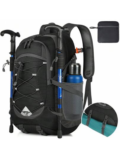 40升可折叠轻便背包,男女通用防水徒步旅行背包,户外旅行背包,黑/蓝色 - 彩色 - 查看 13