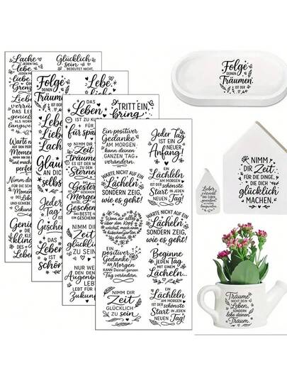 40张德语励志语录主题转印贴纸套装 - 激励人心的名言贴纸,适用于家具、玻璃,易于粘贴,DIY家居生活灵感 - 彩色 - 查看 10