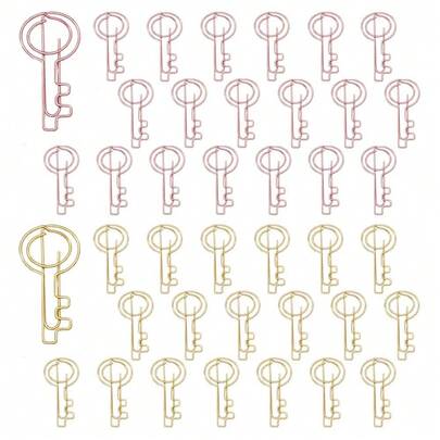 40pcs Key Shape Paper Clips With Clear Box, Rose Gold And Yellow Gold, Funny Cute Paperclips Bookmarks Planner Clips For Fun Office Supplies Schoolsss Gifts Wedding Decoration