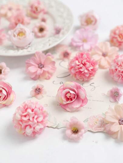 40个迷你人造花头,包括仿牡丹、雏菊、玫瑰、多色小丝雏菊,约2-4.5厘米,适用于婚礼装饰、派对装饰、手工花环、家居装饰、节日礼物、DIY家居装饰,色彩缤纷,可自由组装。