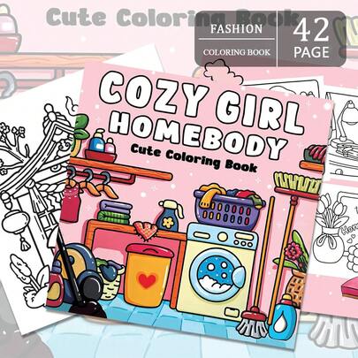42页 - 210克,女孩日常治愈系涂色书,柔软纸张,甜美治愈风格,家居清洁场景,粉色和黄色配色方案,心形垃圾桶细节,舒缓压力涂色,适合文具、学习用品,送给女孩的绝佳礼物,情人节、新年礼物 - LITTLE COZY - 查看 7