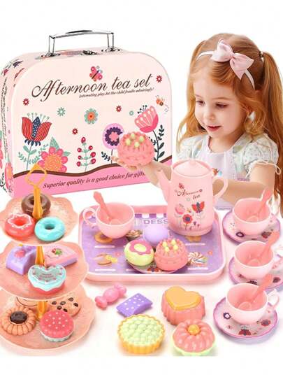 42 件儿童茶会套装,适合小女孩 - 适合 3-8 岁女孩的生日礼物玩具 - 可爱公主玩具幼儿锡制茶具 - 带有甜点、花茶壶和手提箱的角色扮演玩具,儿童小玩具,儿童玩具厨房,幼儿女孩,儿童角色扮演,玩橡皮泥套装,玩具食物套装 - 彩色 - 查看 3