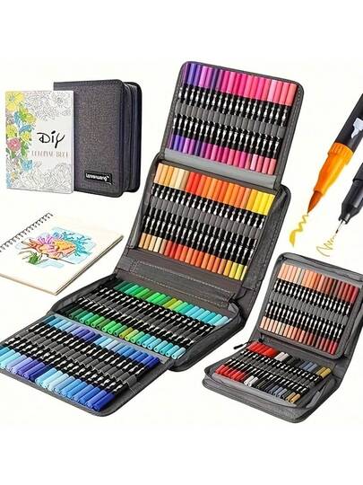 48 支双头彩色笔艺术马克笔套装,适用于成人涂色书、圣诞贺卡、笔记、素描、书法、日记 - 彩色 - 查看 1