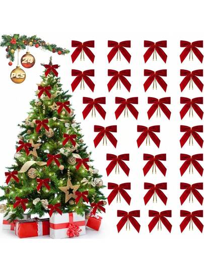48件装植绒装饰蝴蝶结挂饰,节日装饰,婚礼,情人节氛围装饰配件,丝带拱门花环蝴蝶结吊坠礼品 - 紅色 - 查看 8