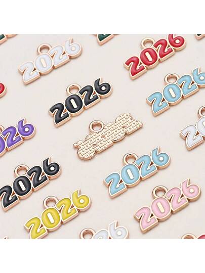 4Amazonia 20件/套 2026新年新款数码金属吊坠 时尚彩色合金饰品 DIY项链手链钥匙扣配件