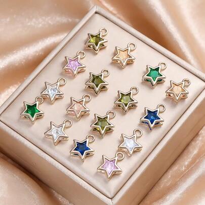 4Amazonia 6个11x14毫米空心金色星星闪亮多色锆石吊坠,适用于耳环、项链、饰品DIY制作配件 - 星星 - 查看 6
