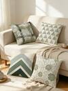4件套花卉叶子格子条纹图案印花枕套(不含枕芯),家居装饰沙发靠垫套,卧室床头靠垫,汽车座椅靠垫,房间装饰