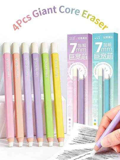 4支装马卡龙色超大橡皮擦 - 附赠卷笔刀,学生专用无尘精准橡皮擦,美术素描高光橡皮擦笔 - 巨寬芯鉛筆橡皮 - 查看 4