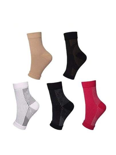 4 双纯色足弓支撑压缩腿套,跑步运动脚踝腿套,透气弹性压缩袜 - 彩色 - 查看 10