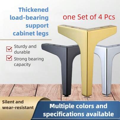 4个黑色金属家具脚垫 - 可调节高度垫,适用于咖啡桌、沙发椅和橱柜 - 耐用替换腿,含安装配件,椅腿地板保护垫
