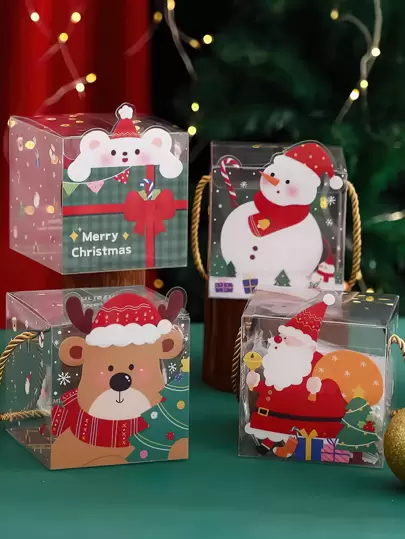 4入組聖誕卡通圖案禮物盒 - 彩色 - 查看 4