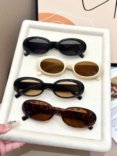 四副经典时尚椭圆形镜框眼镜套装 - 亮黑色、乳白色、茶黑色和玳瑁色镜框,搭配黑色和茶色镜片。简约休闲时尚的装饰眼镜,适合任何脸型,可用于时尚穿搭、海滩派对、聚会和度假。 - 彩色 - 查看 4