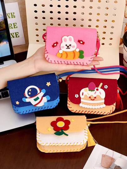 4件套DIY卡通动物斜挎包套装 - 可爱无纺布女孩钱包,适合缝纫工艺品和派对礼物,手工制作,礼品(仅含材料,需手工制作) - 彩色 - 查看 1