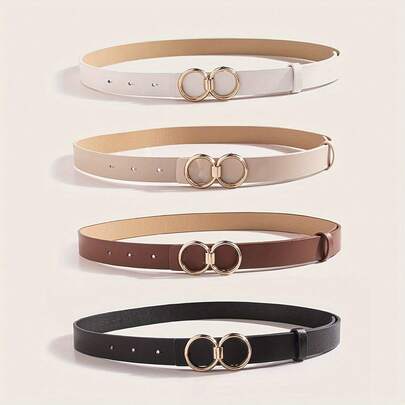 4条装双环金属扣女士腰带,简约百搭PU皮革腰带,适合所有季节,可搭配牛仔裤、西装、连衣裙,打造显瘦效果,多种颜色可选。