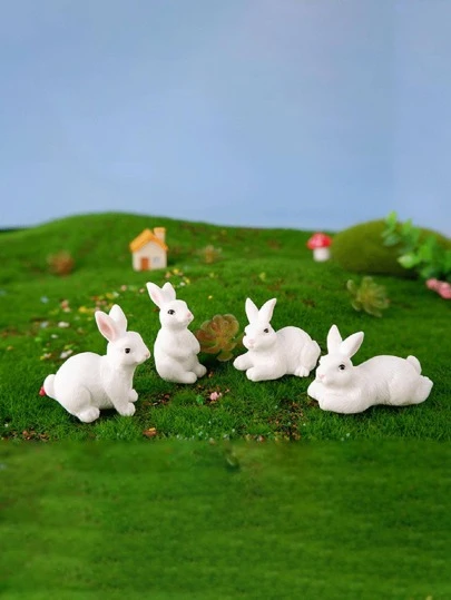 4 件兔子设计装饰工艺品,可爱迷你艺术装饰,适合家居装饰的最佳礼物 - 白色 - 查看 7