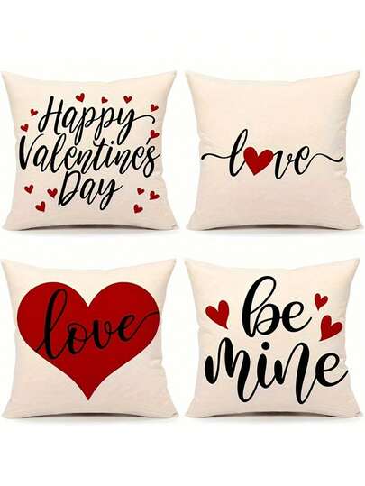 4入組杏色聚酯字母、心形和愛心圖案枕套,適合情人節 - 杏色 - 查看 4