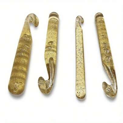 4支/套手工粗线钩针,12mm-20mm,透明柠檬黄亚克力材质,符合人体工学手柄,适合编织毛衣/厚围巾