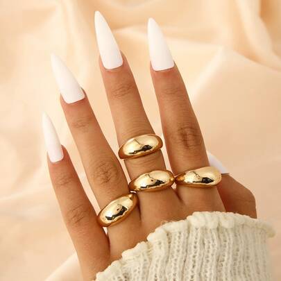 4件套奢华几何可调节熔岩戒指,合金弧形个性化戒指,女士款 - 01 - 查看 4