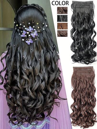 4件套欧美风格合成假发接发,公主卷复古波浪假发 - 彩色 - 查看 1