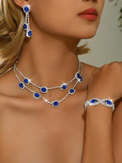 4件套水钻首饰,包括(1条项链+1对耳环+1条手链),时尚百搭,适合女性日常佩戴、婚礼、派对和其他场合。 - 848592 - 查看 1