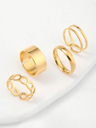 4 件套不锈钢开口戒指套装,简约而个性化,非常适合派对和礼物 - 金色 - 查看 1