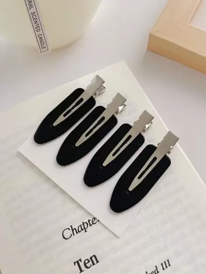 4入組雙色髮夾街頭潮流 - 黑色 - 查看 3