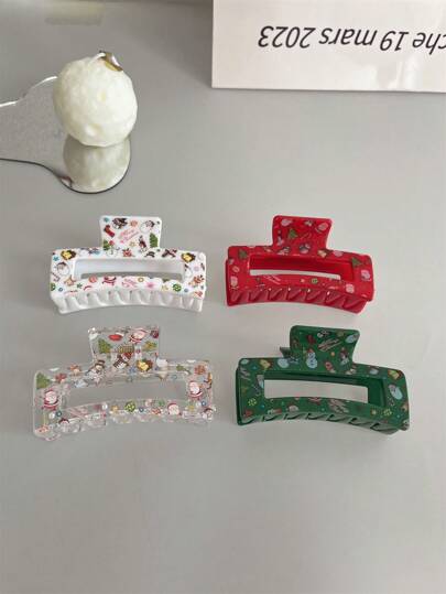 4入組女士節日用長形聖誕髮夾,具有可愛和個性的聖誕老人,星星,雪花,嘉年華元素,適用於日常穿著,工作,派對,旅行 - 彩色 - 查看 1