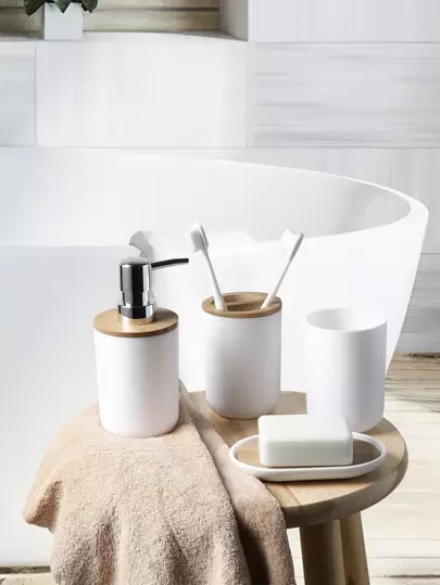 4 件套乳液分配器、皂碟和漱口杯,现代塑料乳液分配器套装,适用于浴室家居浴室装饰秋季装饰返校 - 白色 - 查看 6