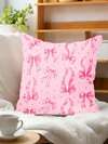 1件可爱粉色蝴蝶结高亚麻粉色俏皮蝴蝶结抱枕套,美观丝带星星装饰抱枕套 18x18英寸 豪华客厅装饰