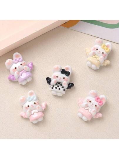 5/10 件多色蝴蝶结兔子树脂装饰套件 - DIY 工艺完美选择,适用于手机壳、鞋夹、发夹和墙壁装饰 - 随机分类 - 彩色 - 查看 5