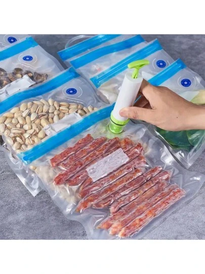 5/10 件可重复使用的真空封口袋,手动气泵是可选的 - 无需电力即可储存新鲜食物和抽取空气,适用于户外、露营 - 彩色 - 查看 1