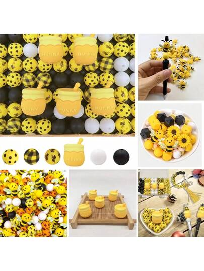 5/25/35 件蜂蜜罐 3D 硅胶珠套装 - 花卉印花珠,适用于 DIY 工艺品、手链、钥匙扣和珠宝制作 - 蜜罐矽膠珠套裝 - 查看 19