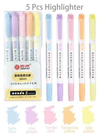 5-25色/盒 粉彩双头荧光笔套装,荧光笔,美术马克笔,可爱卡哇伊文具,适合记笔记 - 彩色 - 查看 5
