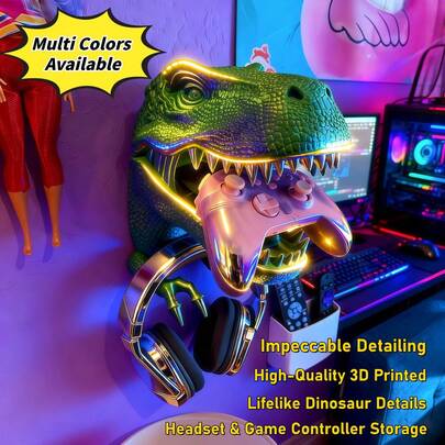 5色霸王龙3D打印壁挂式置物架,侏罗纪恐龙墙饰,带爪桌面雕塑,游戏耳机支架,创意家居装饰,万圣节,父亲节,生日礼物 - 1PC - 查看 5