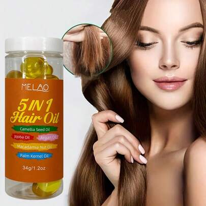 五合一护发油,MELAO护发油,蕴含山茶籽油、荷荷巴油、摩洛哥坚果油和棕榈仁油,多效滋养,适合所有发质,增添光泽、柔软顺滑,抚平毛躁,修护干枯受损发质,34克/1.2盎司 - 油 - 查看 1
