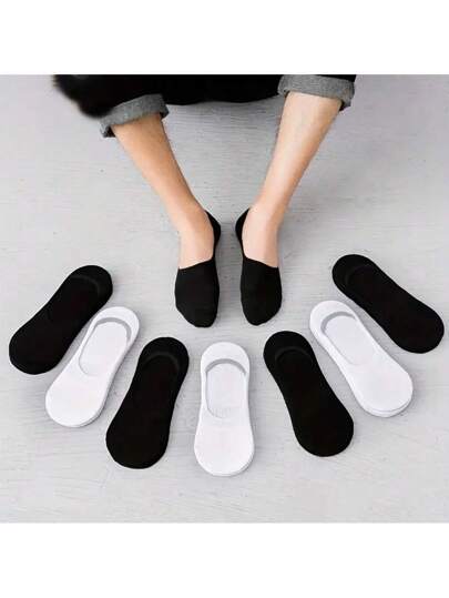 5 双黑/白/灰色纯色男女通用短袜,透气低帮短袜,春夏,四季皆宜 - 彩色 - 查看 10