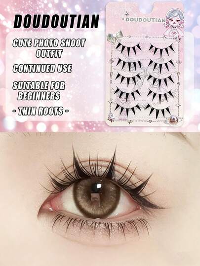 5对卡通湿贴假睫毛,自然裸妆风格,湿贴设计打造浓密显眼的睫毛,可重复使用的整条假睫毛,新手也能轻松上手,适合作为万圣节/圣诞节礼物 - 黑色 - 查看 5