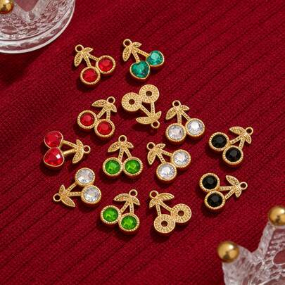5件套304不锈钢吊坠套装,迷你水果樱桃造型,PVD镀金金属,可用于DIY耳环、项链、手链等饰品制作,批发 - 彩色 - 查看 11