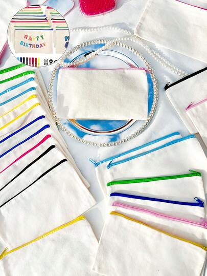 5/10个装 DIY空白布袋 化妆包、铅笔盒、礼品袋、便携式化妆包 口红化妆包 个性化时尚洗漱收纳包 多功能铅笔盒 文件袋、笔筒、钱包 - 米色 - 查看 24