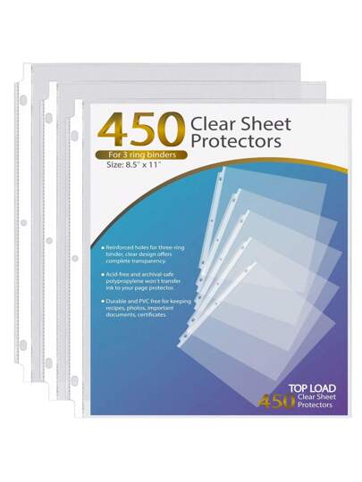 50/100/250/450 件紙張保護膜 8.5 X 11 吋透明頁面保護膜,適用於 3 環活頁夾,活頁夾塑膠套,頂部裝載紙張保護膜 Letter 尺寸 - 無色 - 查看 4
