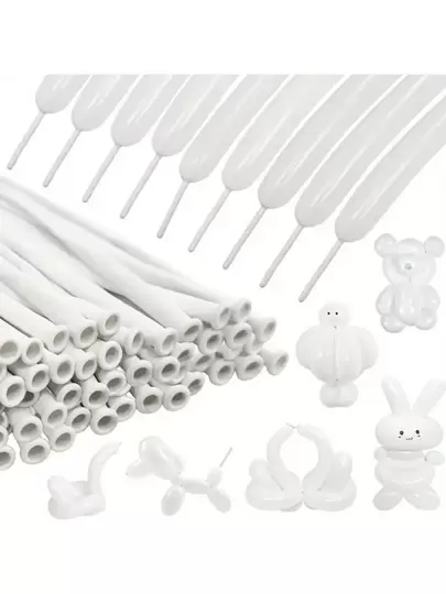 50/100个1.8克260Q白色和黑色长乳胶气球适用于生日派对装饰、扭曲和造型气球、圣诞节 - 白色 - 查看 1
