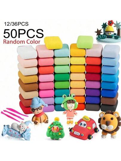 50 色超轻风干粘土、造型粘土、玩具太空泥、带工具和教程的 DIY 雕塑套件、男孩和女孩的礼物、粘土、风干粘土、彩泥、儿童 DIY、食用粘土、粘土釉料、腻子、儿童粘液、儿童 DIY - 彩色 - 查看 6