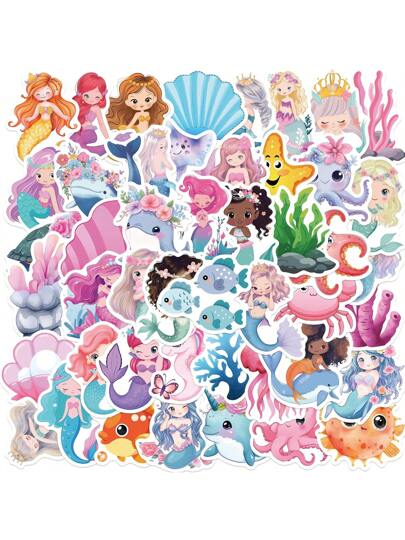 50 张美人鱼贴纸包 | 乙烯基美学贴纸,适用于剪贴簿、日记、笔记本电脑、保险杠、滑板、水瓶、电脑、电话、卡通、安全帽、汽车贴纸